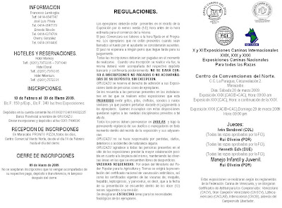 La Asociación Club Canino Colombiano (ACCC) invita a todos los expositores al Circuito Internacional de Bogotá 2009 (97, 98, 99 y 100 Exposiciones Caninas Internacionales) que se realizará en Bogotá los días 20, 21, 22 Y 23 de Marzo del 2009.